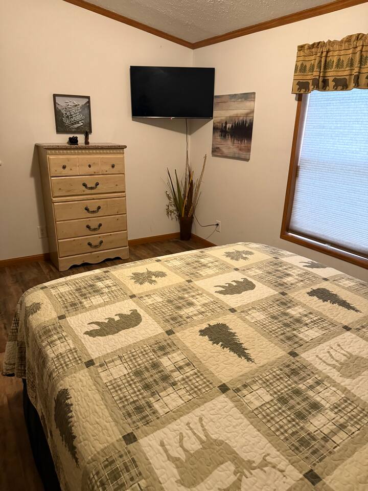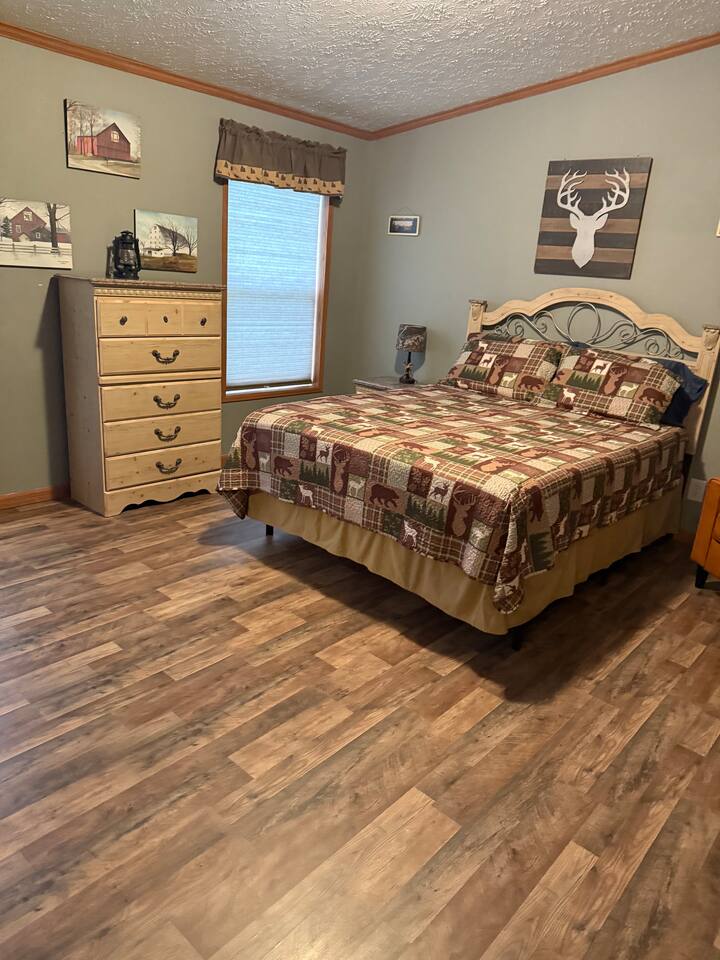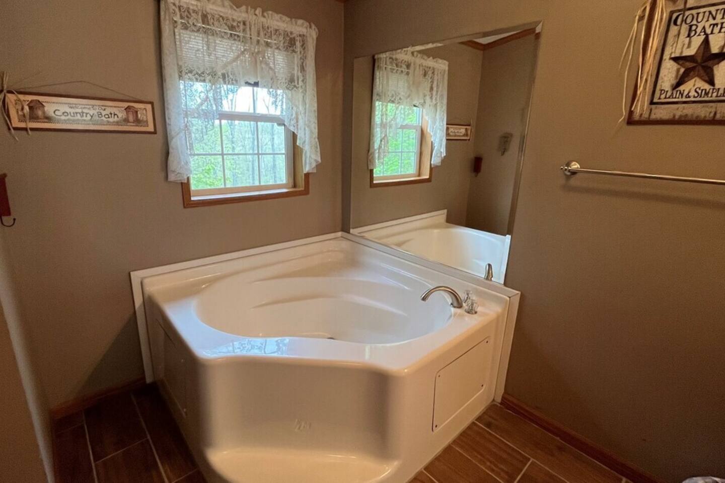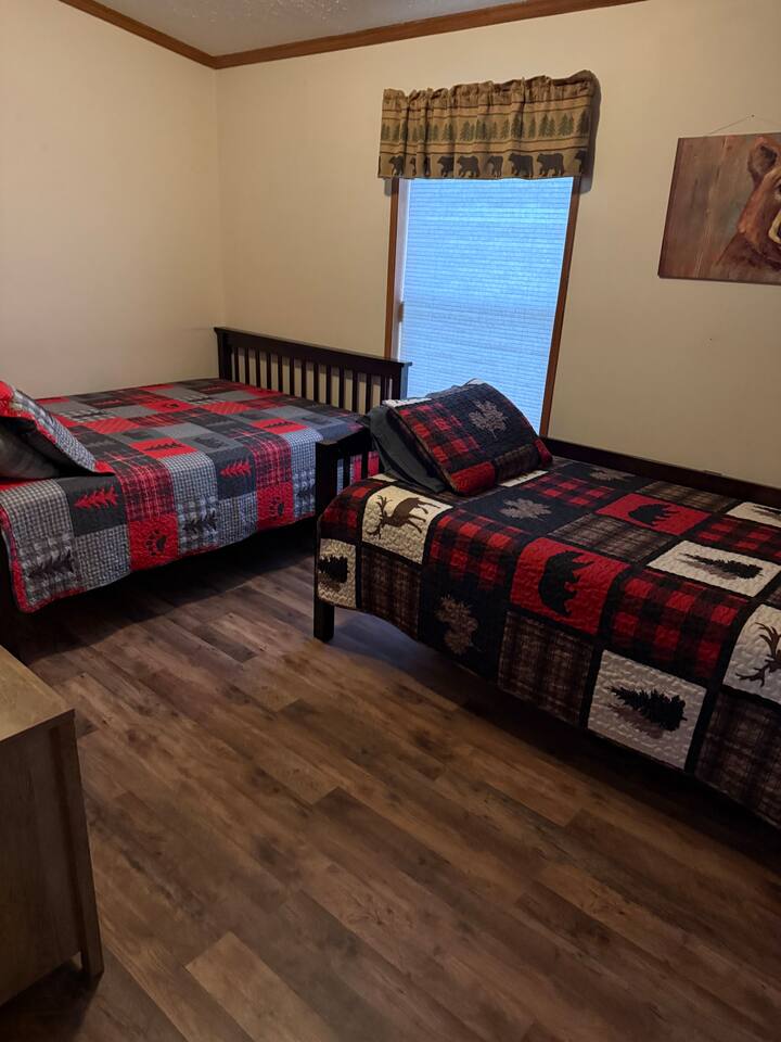 Buck Run Cottage offers 3 bedrooms and 2 baths with hi-speed Wi-Fi. All three bedrooms have Flatscreen TV's. The master suite has a private bathroom with queen size bed, garden tub, shower and his/her sinks. 2nd bedroom with queen size bed, 3rd bedroom with twin and full beds. 2nd bath has bath/shower combo. Nicely stocked kitchen with modern appliances. Wood burning fireplace. Large, elevated deck with hot tub. Fire pit located in huge yard.
