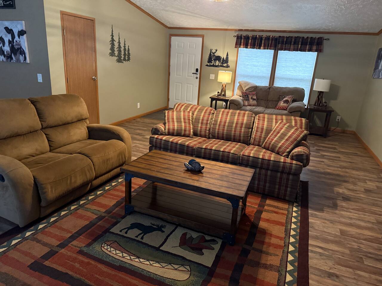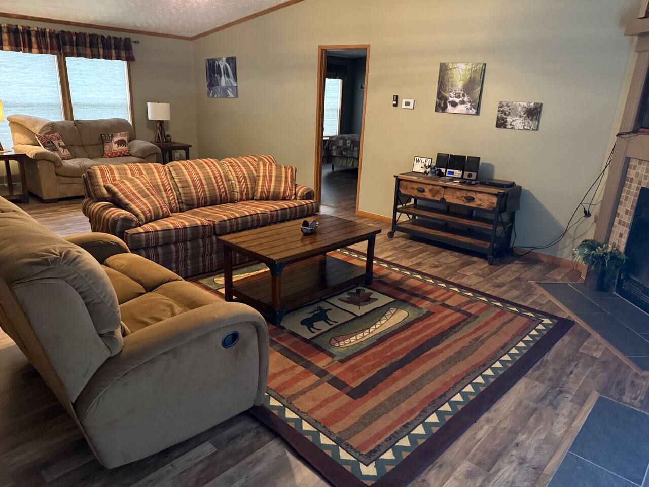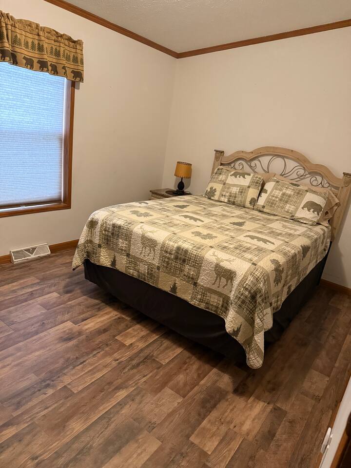 Buck Run Cottage offers 3 bedrooms and 2 baths with hi-speed Wi-Fi. All three bedrooms have Flatscreen TV's. The master suite has a private bathroom with queen size bed, garden tub, shower and his/her sinks. 2nd bedroom with queen size bed, 3rd bedroom with twin and full beds. 2nd bath has bath/shower combo. Nicely stocked kitchen with modern appliances. Wood burning fireplace. Large, elevated deck with hot tub. Fire pit located in huge yard.