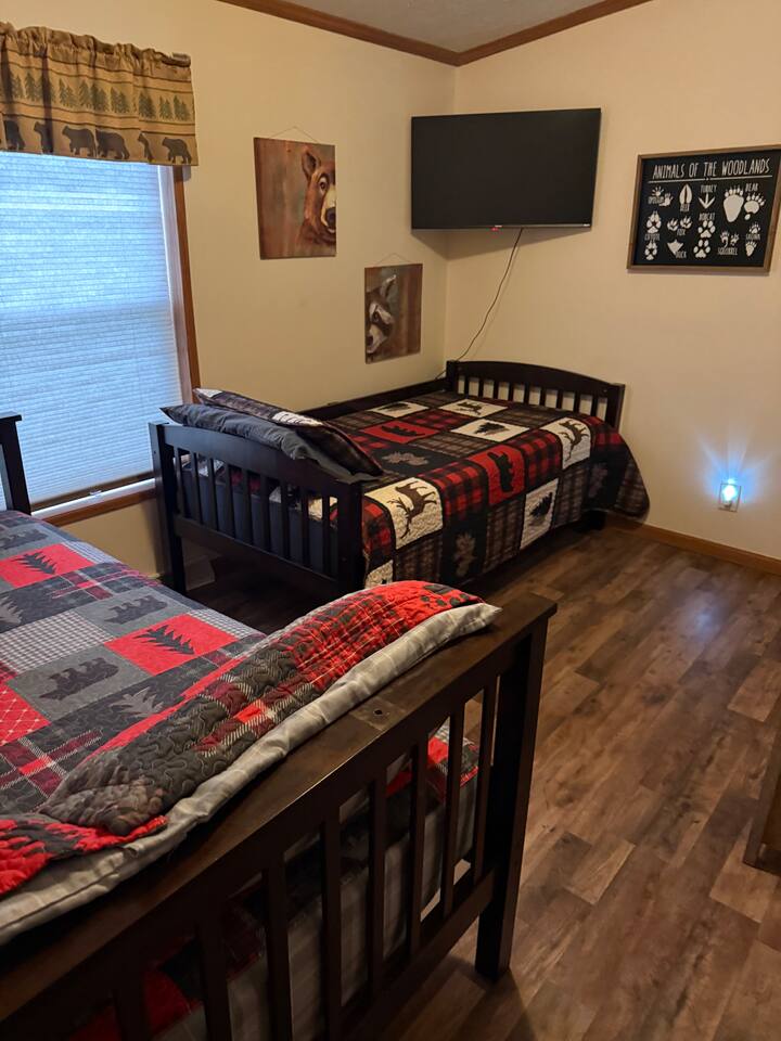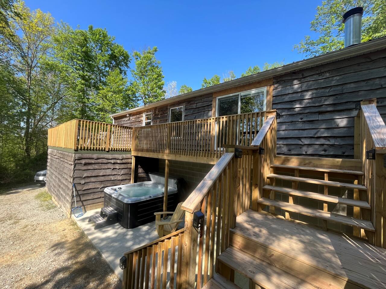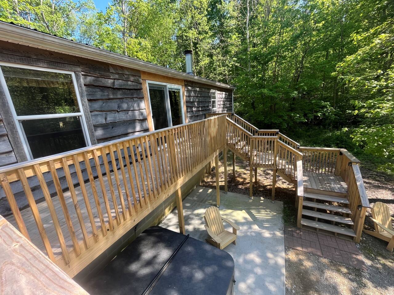 Welcome to Acorn Acres Cabins! The Buck Run Cottage offers an open floor concept. Situated on top of a hill, surrounded by the beauty of nature in Hocking Hills. Each bedroom has a flatscreen TV with hi-speed Wi-Fi. Buck Run has one master bedroom with a queen size bed and private master bathroom with a garden style tub and walk in shower. On the other side of the cottage are two additional bedrooms, one bedroom with a queen size bed and the other bedroom with twin and full size beds. Linens provided. Sitting adjacent to those two rooms is an additional bathroom with bath/shower combo. The living room, dining area and kitchen are all open and connected to one another with space for everyone to gather and spend time together. The kitchen is nicely stocked with a refrigerator, convection oven and dishwasher for your cooking needs. Get cozy in front of the wood burning fireplace (seasonally operated) while hanging out with your friends and family. Step out onto the large, elevated deck located on the back of the cottage where you can enjoy sitting in the hot tub year around taking in the sights and sounds of nature. Sit back and relax, in our custom-built Adirondack chairs (provided seasonally), around the fire pit, while enjoying the elements of nature. Linens, towels, wash cloths and starter supplies provided. Nicely located in the Heart of Hocking Hills! Located 8 miles to our local state parks, 2 miles to Lake Logan, local restaurants, grocery shopping and lots of fun activities. Don't hesitate to bring your furry friend to our DOG FRIENDLY property (pet fees apply). Visit Hockinghills to assist in planning your trip! License #00698