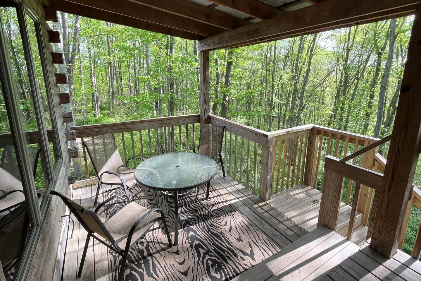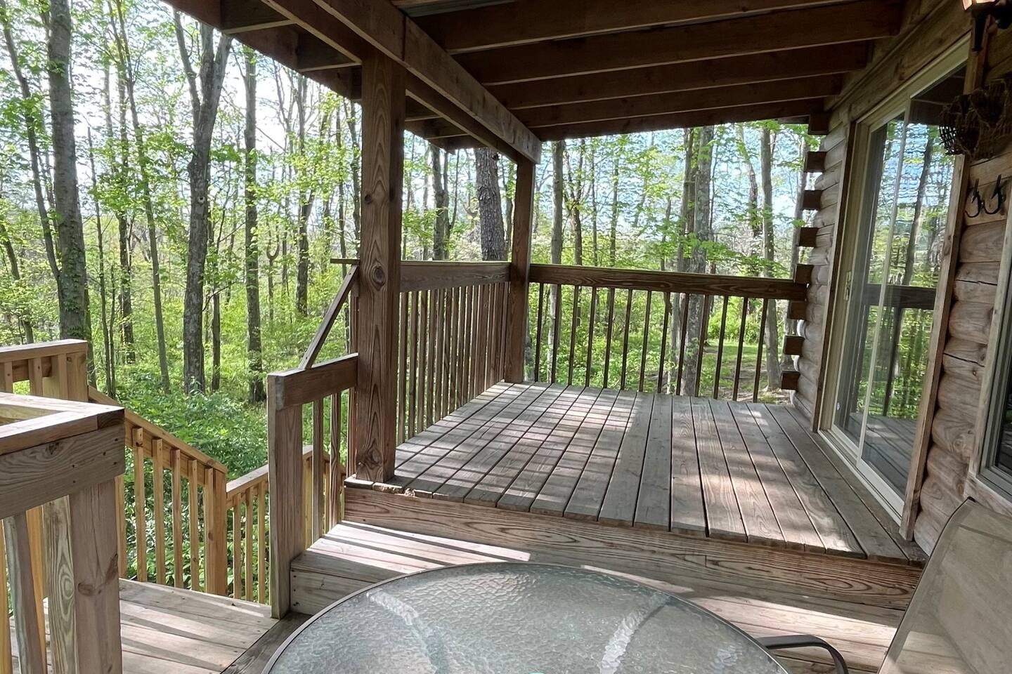 Welcome to Acorn Acres Cabins! White Oak Cabin is a rustic cabin, situated on top of a hill, surrounded by the beauty of nature. White Oak has 2 bedrooms with a total of 3 queen size beds, linens provided. We offer hi speed Wi-Fi. There are 2 flat screen TV's each with a DVD player. The first bedroom, located on the top level, with one queen size bed. The second bedroom, located on the lower level, with two queen size beds. There are 2 bathrooms each with a shower, located on both levels. There is a nicely stocked kitchenette with refrigerator and convection oven for your cooking needs. Get cozy in the open living space next to the gas log fireplace (operated seasonally). Enjoy the hot tub year around, privately located on the covered upper deck, nestled in the trees. Sit back and relax, in our custom-built Adirondack chairs (provided seasonally), around the fire pit while enjoying the elements of nature. Linens, towels, wash cloths and starter supplies provided. Nicely located in the Heart of Hocking Hills! Located 8 miles to our local state parks, 2 miles to Lake Logan, local restaurants, grocery shopping and lots of fun activities. Don't hesitate to bring your furry friend to our DOG FRIENDLY property (pet fees apply). License #00698
