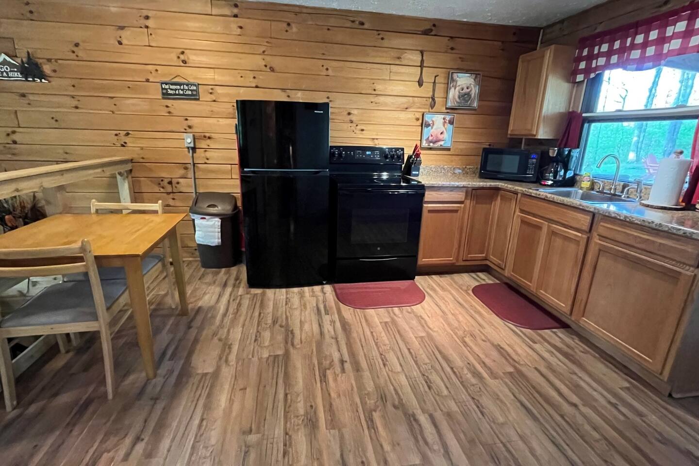 White Oak Cabin is a rustic cabin, situated on a beautiful, wooded hill. White Oak has 2 bedrooms with a total of 3 queen size beds. There is a nicely stocked kitchenette with refrigerator and convection oven. We offer hi speed Wi-Fi. There are 2 Flatscreen TVs each with a DVD player. Enjoy the privately located hot tub year around. Bring your furry friend to our DOG FRIENDLY property (pet fees apply). Nicely located in the Heart of Hocking Hills!