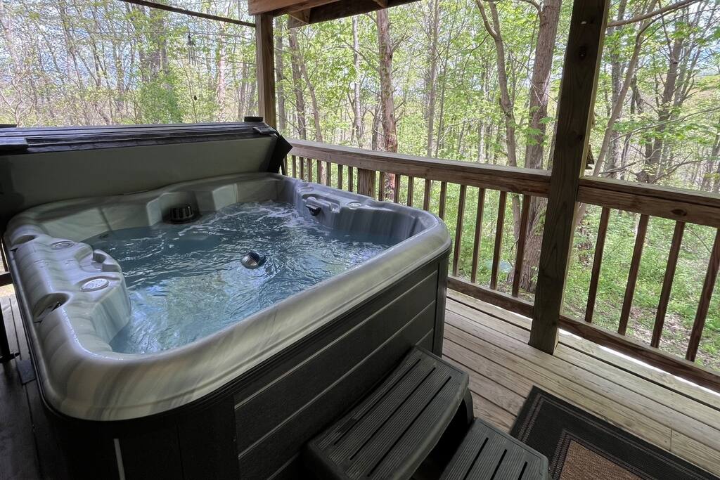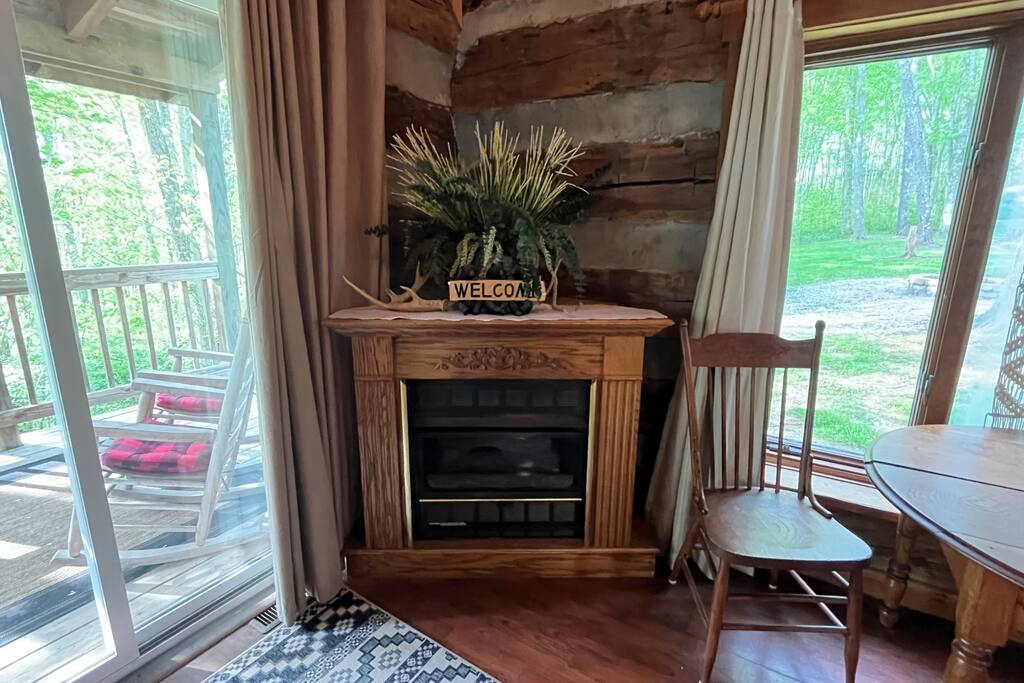 Welcome to Acorn Acres Cabins! Frontier Log Cabin is an 1860's authentic, rustic log cabin transported from Laurelville, Ohio, situated on top of a hill, surrounded by the beauty of nature. Frontier has a loft style bedroom built on top of the original log cabin with a queen size bed, linens provided. There is a nicely stocked kitchenette with a refrigerator and convection oven for your cooking needs. We offer high speed Wi-Fi. There are 2 flatscreen TV's with one being in the loft bedroom and the other downstairs in the living room. Get cozy in the den style living space next to the gas log fireplace (operated seasonally). Enjoy the hot tub open year around, privately located on the covered back porch, while enjoying the sights and sounds of wildlife. Sit back and relax, in our custom-built Adirondack chairs (provided seasonally), around the fire pit while enjoying the elements of nature. Linens, towels, wash cloths and starter supplies provided. Nicely located in the Heart of Hocking Hills! Located 8 miles to our local state parks, 2 miles to Lake Logan, local restaurants, grocery shopping and lots of fun activities. Don't hesitate to bring your furry friend to our DOG FRIENDLY property (pet fees apply). License #00698