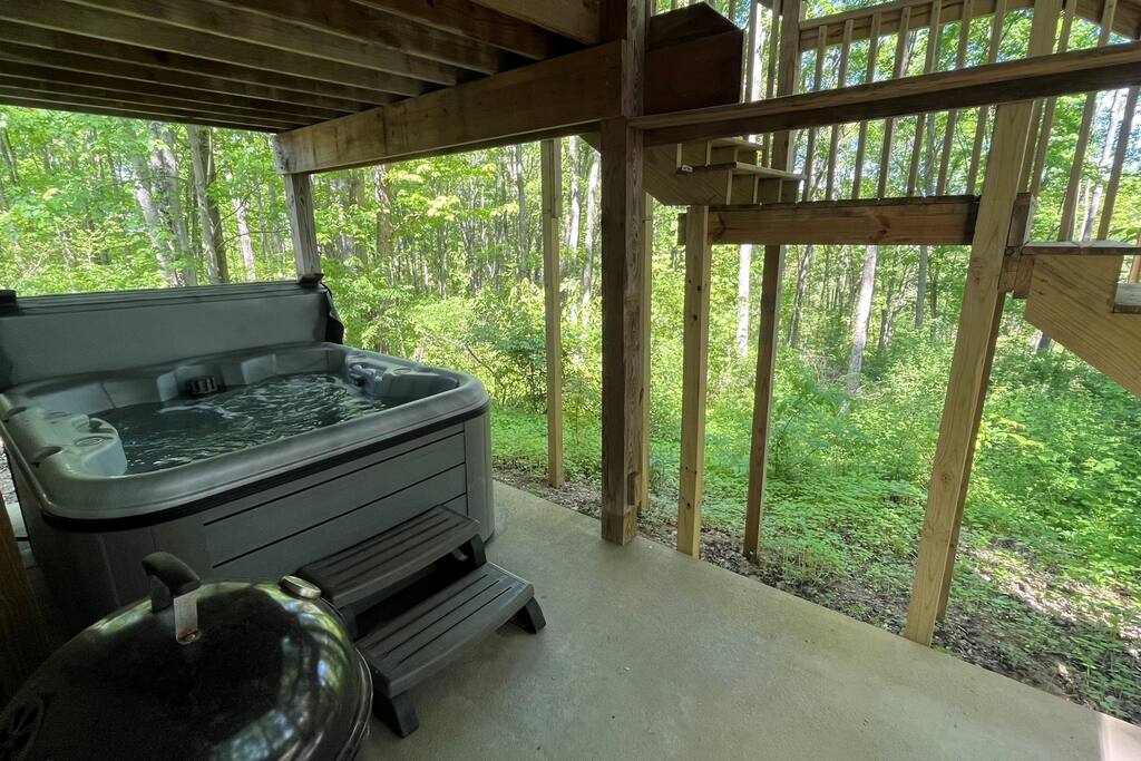Welcome to Acorn Acres Cabins! White Oak Cabin is a rustic cabin, situated on top of a hill, surrounded by the beauty of nature. White Oak has 2 bedrooms with a total of 3 queen size beds, linens provided. We offer hi speed Wi-Fi. There are 2 flat screen TV's each with a DVD player. The first bedroom, located on the top level, with one queen size bed. The second bedroom, located on the lower level, with two queen size beds. There are 2 bathrooms each with a shower, located on both levels. There is a nicely stocked kitchenette with refrigerator and convection oven for your cooking needs. Get cozy in the open living space next to the gas log fireplace (operated seasonally). Enjoy the hot tub year around, privately located on the covered upper deck, nestled in the trees. Sit back and relax, in our custom-built Adirondack chairs (provided seasonally), around the fire pit while enjoying the elements of nature. Linens, towels, wash cloths and starter supplies provided. Nicely located in the Heart of Hocking Hills! Located 8 miles to our local state parks, 2 miles to Lake Logan, local restaurants, grocery shopping and lots of fun activities. Don't hesitate to bring your furry friend to our DOG FRIENDLY property (pet fees apply). License #00698