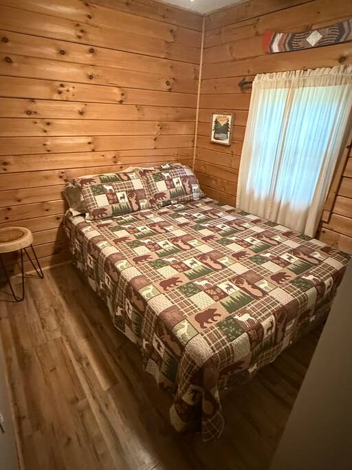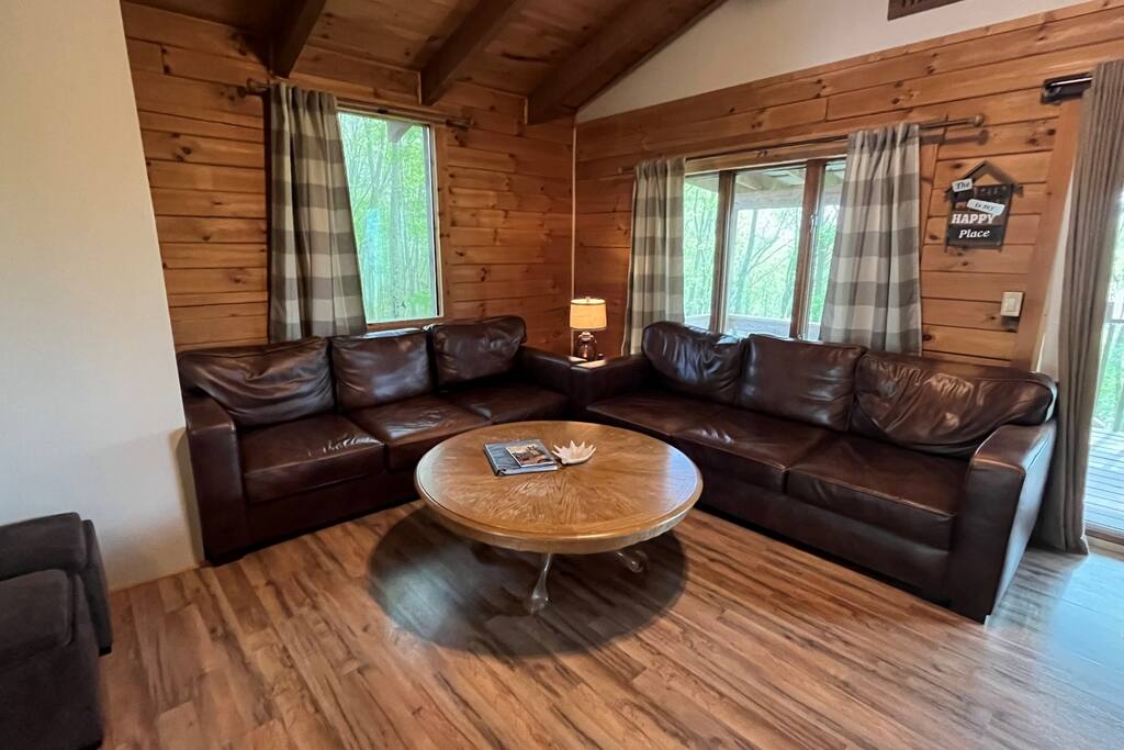 White Oak Cabin is a rustic cabin, situated on a beautiful, wooded hill. White Oak has 2 bedrooms with a total of 3 queen size beds. There is a nicely stocked kitchenette with refrigerator and convection oven. We offer hi speed Wi-Fi. There are 2 Flatscreen TVs each with a DVD player. Enjoy the privately located hot tub year around. Bring your furry friend to our DOG FRIENDLY property (pet fees apply). Nicely located in the Heart of Hocking Hills!